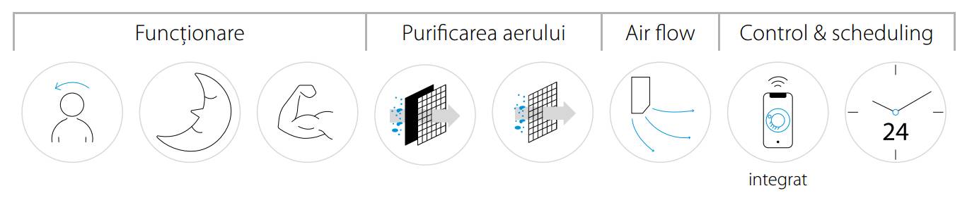 - Ventilator - debit aer răcire Silențioasă/Mică/Medie/Mare unitate interioara [m³/min]