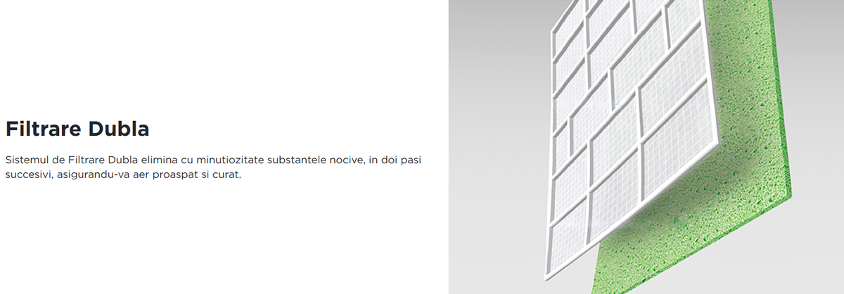 Pe langa paletele ventilatorului cu design special, motorul DC al unitatii exterioare are capacitatea de a se roti in sens invers, pentru a se debarasa de nisipul si praful din exterior, asigurand curatenia aparatului si functionarea corespunzatoare, indiferent de conditiile de mediu.