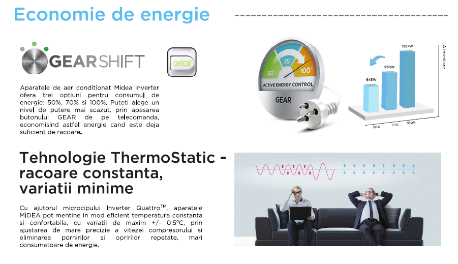 Trebuie doar sa conectati modulul WI-FI USB (este inclus in pret) la unitatea interioara, apoi sa descarcati aplicatia MideaAIR, si puteti controla aparatul de aer conditionat de acasa oricand si de oriunde, in mod convenabil si in siguranta. Ajutati-va copiii si parintii sa se bucure de aer conditionat, chiar si atunci cand nu sunteti langa ei.